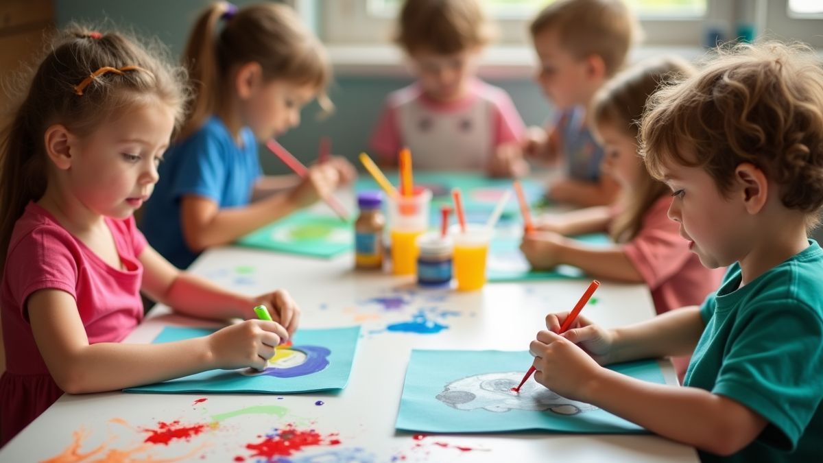 Kunst en creativiteit op Kinderen en Huisdieren Dag: kinderen maken prachtige schilderijen van hun huisdieren.